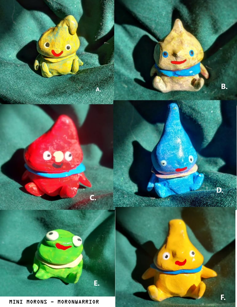 One of a kind Polymer Clay Buddies with a resin hard finish. Sculpted and painted by Ed Edderson. Triplebummer*MoronWarrior*GOOGOOGAGA